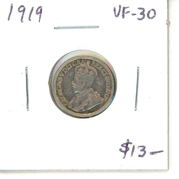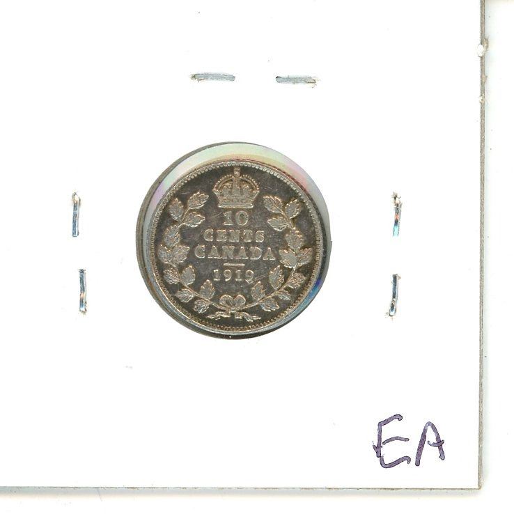 1919 Canadian Silver 10 Cents. VF-30.
