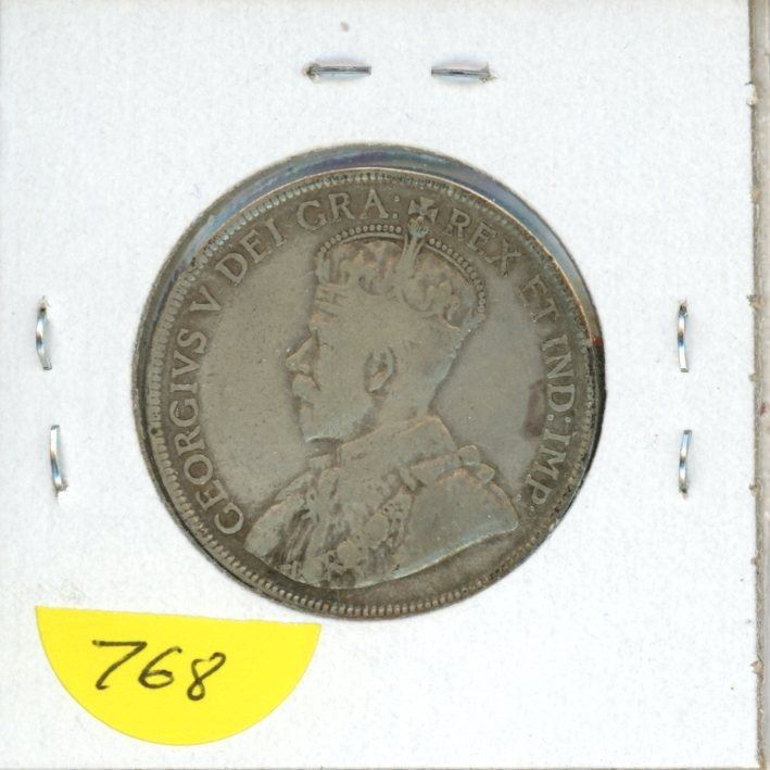 1919 Canadian Silver 50 Cents. F-12 or better. Nicely Toned