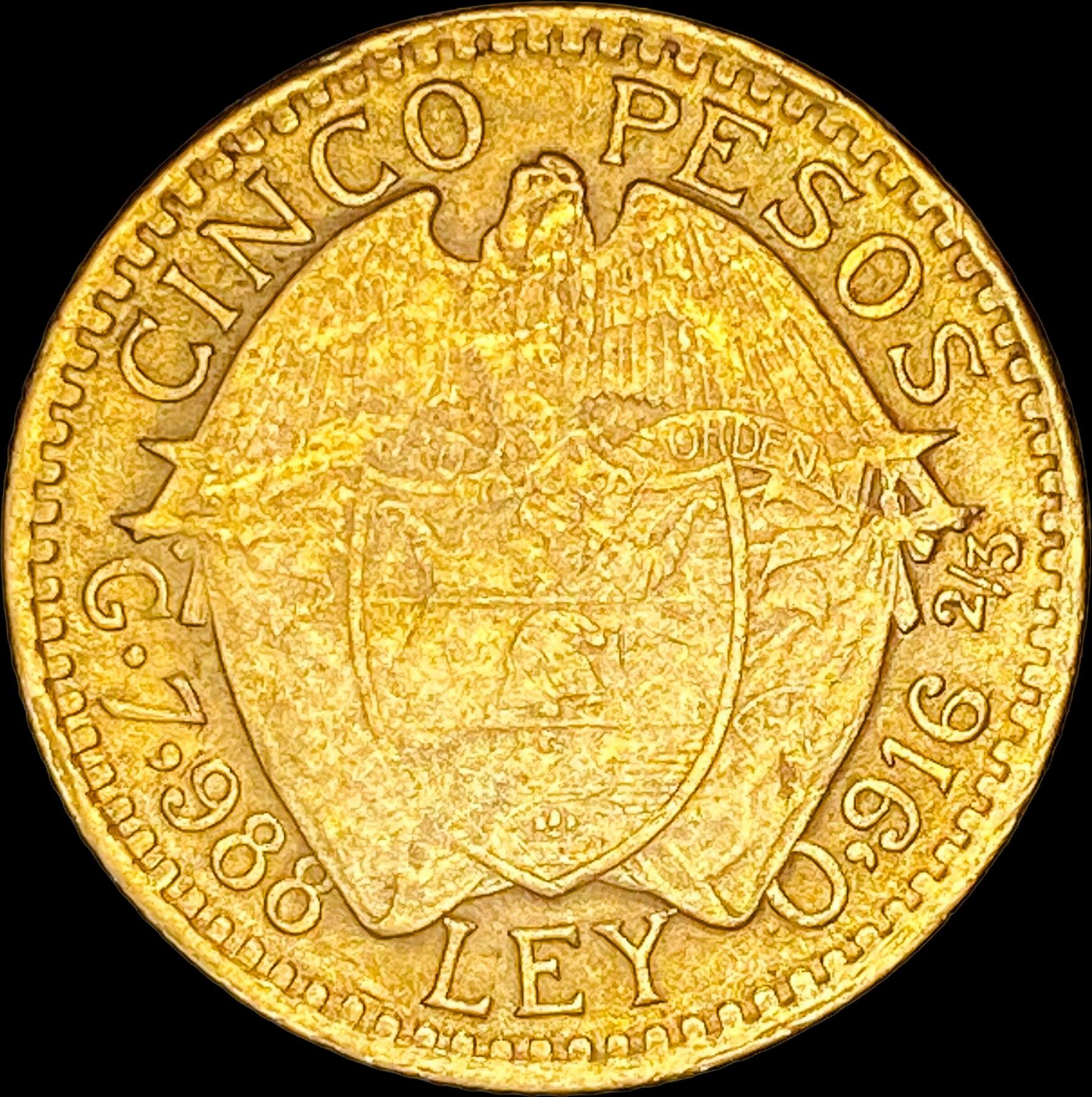 1919 Colombia .2355oz Gold 5 Pesos CLOSELY UNCIRCULATED