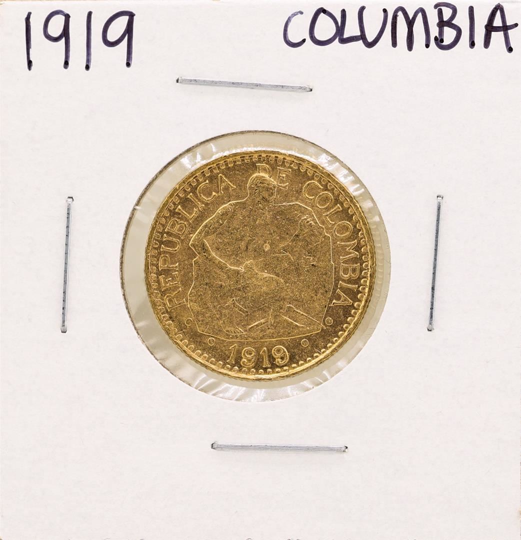 One 1919 Columbia 5 Pesos Gold Coin.