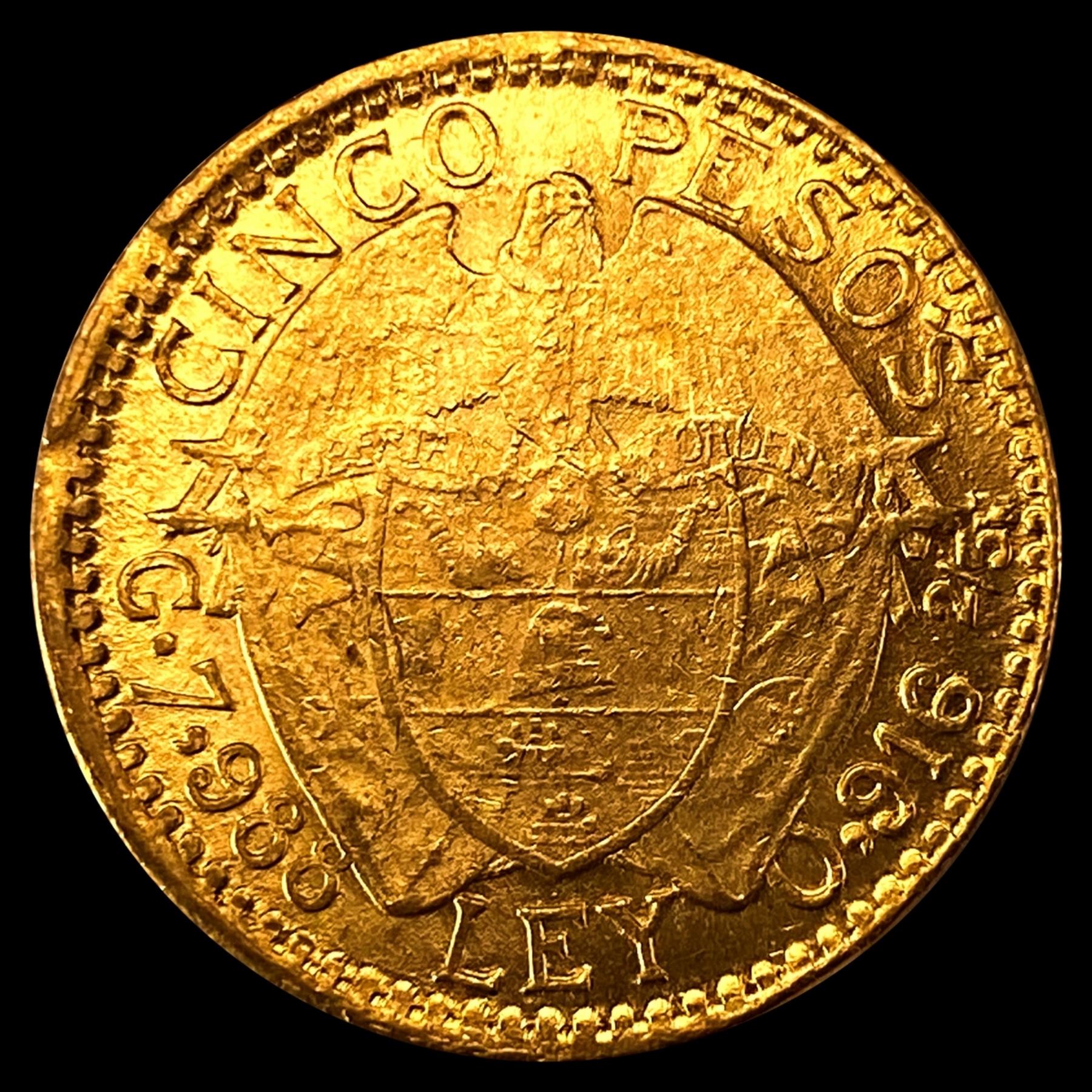 1919 Columbia Gold 5 Pesos CLOSELY UNCIRCULATED