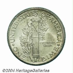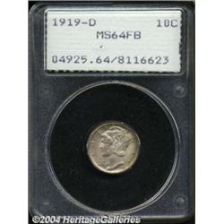 <table><tbody><tr><td><table> <TR><TD width="100%"><TABLE cellSpacing=1 cellPadding=3 width="100%" border=0><TBODY><TR><TD width="100%" bgColor=#79735c><FONT face=arial color=#ffffff size=3><B>Description</B> </FONT></TD></TR><TR><TD width="100%" bgColor=#ffffff><FONT face=arial size=2><B>1919-D 10C MS64 Full Bands PCGS.</B></I> Despite a sizeable mintage of more than 9 million pieces, the 1919-D was not saved in significant numbers at the time of issue. What's more, this branch mint issue is prone to striking weakness that makes the acquisition of an attractive example a difficult task. This is an uncommonly desirable coin whose satiny surfaces radiate beneath original gray-gold iridescence. A couple of small pinscratches are noted in the left obverse field, but both sides are fully lustrous with bold striking detail. A find for the specialist, this one is housed in an early PCGS holder. </FONT></TD></TR></TBODY></TABLE></TD></TR></TBODY></TABLE><BR><A name=PricesRealized></A><TABLE cellSpacing=0 cellPadding=0 width="100%" bgColor=#000000 border=0><TBODY><TR><TD width="100%"><TABLE cellSpacing=1 cellPadding=3 width="100%" border=0><TBODY><TR><TD width="100%" bgColor=#79735c><A name=PR><FONT face=arial color=#ffffff size=3><B>Previous Prices from Heritage Auctions</B> </FONT></A></TD></TR><TR><TD bgColor=#f6f6ed><TABLE cellSpacing=0 cellPadding=0 width="100%" border=1><TBODY><TR><TD align=middle width="33%"><B>Date</B></TD><TD align=middle width="33%"><B>Service</B></TD><TD align=middle width="33%"><B>Price</B></TD></TR><TR bgColor=whitesmoke><TD width="33%"><B>09/20/2003</B></TD><TD width="33%">PCGS</TD><TD width="33%">$6,037.50</TD></TR><TR bgColor=whitesmoke><TD width="33%"><B>07/30/2002</B></TD><TD width="33%">PCGS</TD><TD width="33%">$8,050.00</TD></TR><TR bgColor=whitesmoke><TD width="33%"><B>06/10/2000</B></TD><TD width="33%">PCGS</TD><TD width="33%">$2,990.00</TD></TR><TR bgColor=whitesmoke><TD width="33%"><B>01/08/1999</B></TD><TD width="33%">PCGS</TD><TD width="33%">$3,162.50</TD></TR><TR bgColor=whitesmoke><TD width="33%"><B>09/21/1996</B></TD><TD width="33%">NGC</TD><TD width="33%">$2,255.00</TD></TR><TR bgColor=whitesmoke><TD width="33%"><B>05/01/1999</B></TD><TD width="33%">PCGS</TD><TD width="33%">$6,325.00</TD></TR></TBODY></TABLE></TD></TR><TR><TD bgColor=#ffffff><FONT face=arial size=1 ?>PLEASE NOTE: All prices realized reflect the final hammer price PLUS the buyer's premium in auctions that charge a buyer's premium. Each item has a notation at the top of the listing indicating whether that lot included a buyer's premium. Example: A item that sells with a final hammer price of $100 and a 20% buyer's premium will display with a price realized of $120. All information listed is intended to be as accurate as possible, but errors are possible. Please use this guide carefully and inform us of any inaccuracies. </FONT></TD></TR></TBODY></TABLE></TD></TR></TBODY></TABLE><BR><TABLE cellSpacing=0 cellPadding=0 width="100%" bgColor=#000000 border=0><TBODY><TR><TD width="100%"><TABLE cellSpacing=1 cellPadding=3 width="100%" border=0><TBODY><TR><TD width="100%" bgColor=#79735c colSpan=6><FONT face=arial color=#ffffff size=3><B>Price Guide*</B> </FONT></TD></TR><TR bgColor=#f6f6ed><TD align=middle><B>Grade</B> </TD><TD align=middle><B>Coin World<BR>(Trends)</B> </TD><TD align=middle><B>Numismedia<BR>Retail</B> </TD><TD align=middle><B>Numismedia<BR>Wholesale</B> </TD><TD align=middle><B>Coin<BR>Universe</B> </TD><TD align=middle><B>Heritage<BR>Value Index</B> </TD></TR><TR bgColor=#ffffff><TD align=middle>63</TD><TD align=right>---</TD><TD align=right>---</TD><TD align=right>$975.00</TD><TD align=right>$675.00</TD><TD align=right>$1,865.69</TD></TR><TR style="FONT-WEIGHT: bold" bgColor=#cccfdd><TD align=middle>64</TD><TD align=right>$2,650.00</TD><TD align=right>---</TD><TD align=right>$4,500.00</TD><TD align=right>$3,850.00</TD><TD align=right>$2,767.50</TD></TR><TR bgColor=#ffffff><TD align=middle>65</TD><TD align=right>---</TD><TD align=right>---</TD><TD align=right>$28,500.00</TD><TD align=right>$52,000.00</TD><TD align=right>$30,575.00</TD></TR><TR bgColor=#ffffff><TD colSpan=6><FONT size=1>*All information listed is intended to be as accurate as possible, but errors are possible. No item may be returned or refused based on this information which is provided as a service to our customers. You should contact each pricing source directly to determine the accuracy of this information. </FONT></TD></TR></TBODY></TABLE></TD></TR></TBODY></TABLE><BR><TABLE cellSpacing=0 cellPadding=0 width="100%" bgColor=#000000 border=0><TBODY><TR><TD width="100%"><TABLE cellSpacing=1 cellPadding=3 width="100%" border=0><TBODY><TR><TD width="100%" bgColor=#79735c><FONT face=arial color=#ffffff size=3><B>Population Guide</B> </FONT></TD></TR><TR bgColor=#ffffff><TD align=middle><!-- Begin Output of Population Grid--><TABLE cellSpacing=0 cellPadding=0 width="100%" border=0><TBODY><TR><TD vAlign=center><TABLE cellSpacing=0 width="100%" border=1 cellsadding="3"><TBODY><TR><TD vAlign=center><TABLE cellSpacing=0 cellPadding=3 width="100%" border=1><TBODY><TR><TD vAlign=center align=middle bgColor=#f0f1e8 colSpan=2 <CENTER><FONT face=Arial size=2><B>PCGS Pop </B></FONT><CENTER></CENTER></TD><TD vAlign=center align=middle bgColor=#f0f1e8 colSpan=2><CENTER><FONT face=Arial size=2><B>NGC Pop</B></CENTER></FONT></TD></TR><TR><TD vAlign=center><FONT face=Arial size=2>(64)</FONT> </TD><TD vAlign=center align=right><FONT face=Arial size=2>47</FONT> </TD><TD vAlign=center><FONT face=Arial size=2>(64)</FONT> </TD><TD vAlign=center align=right><FONT face=Arial size=2>22</FONT> </TD></TR><TR><TD vAlign=center><FONT face=Arial size=2>(>64)</FONT> </TD><TD vAlign=center align=right><FONT face=Arial size=2>15</FONT> </TD><TD vAlign=center><FONT face=Arial size=2>(>64)</FONT> </TD><TD vAlign=center align=right><FONT face=Arial size=2>3</FONT> </TD></TR></TBODY></TABLE></TD></TR></TBODY></TABLE></TD></TR></TBODY></TABLE><