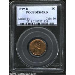 1919-D 1C MS65 Red PCGS. A razor-sharp Gem with medium rose-gold color, full cartwheel luster, and a