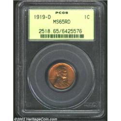 1919-D 1C MS65 Red PCGS. Fiery red, with a few carbon spots scattered on both sides of the coin.From the St. Louis Collection. Important notice: We expect to be auctioning lots at the rate of 200-250 per hour. Sometimes eBay Premier live bid software cannot keep up with that pace, so we strongly recommend that you place a realistic proxy bid now as insurance to avoid disappointment. Also please note that all Heritage/CAA lots purchased through eBay Premier carry a 20% Buyer's Premium. Please make sure you read the Terms and Conditions.