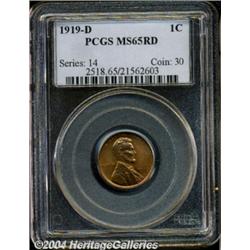 <B>1919-D<1C> MS65 Red PCGS.</B></I> Mint red-orange color dominates lustrous surfaces on each side of this sharply struck D-mint Lincoln cent. A few small flecks are scattered about, none of which are bothersome. Population: 51 in 65, 12 finer (3/04). <BR><BR><B>Important notice:</B> Heritage usually auctions material at the rate of 200-250 lots per hour. On some occasions eBay Live bid software or the Internet may not be able to keep up with the pace of the auction. We recommend placing a realistic absentee bid now as insurance to avoid disappointment. Occasionally the auctioneer may eliminate or reject an eBay Live bid, and the auctioneer may also reopen a lot after the close of the eBay live bidding (usually because we missed an audience bid), and may reject your bid even if it shows you as the winning bidder. By bidding via eBay Live, you agree that Heritage may award the lot to another bidder at its sole discretion under the circumstances described above or any other reasonable circumstances. Since eBay bids are not shown to us until we open the lot on the floor, we treat those bids just like floor bids. In most cases the floor responds before the eBay bid is presented to us, due to Internet lag time, so for consistency we have made it a policy that floor bids are always considered first over tie eBay live bids. Also please note that all Heritage lots purchased through eBay Live carry a 20% Buyer's Premium. Please make sure you read the Terms and Conditions before you bid. </span></font></tr></table></td></tr></table>