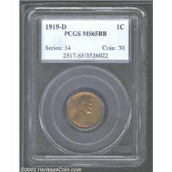 1919-D 1C MS65 Red and Brown PCGS. The mostly orange-red surfaces exhibit minimal muting to light br
