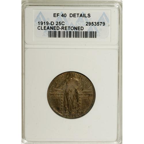 1919-D 25C --Cleaned, Retoned--ANACS. XF40 Details.