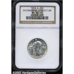 1919-D 25C MS66 Full Head NGC. Ex: Chicagoland Collection. Not only are the surfaces in a pristine state of preservation, but the details on this important strike rarity in the Standing Liberty Quarter series are especially sharp. Although presenting as brilliant, a thin veil of canary-gold patina accents the reverse. Surface marks are extremely minimal to the point that one has to look closely even with a magnifier. A 1919-D Quarter in Superb Full Head condition has to be considered one of the more important issues in the series. Population: 2 in 66, 0 finer (10/02). Important notice: Heritage usually auctions material at the rate of 200-250 lots per hour. On some occasions eBay Live bid software or the Internet may not be able to keep up with the pace of the auction. We recommend placing a realistic absentee bid now as insurance to avoid disappointment. Occasionally the auctioneer may eliminate or reject an eBay Live bid, and the auctioneer may also reopen a lot after the close of the eBay live bidding (usually because we missed an audience bid), and may reject your bid even if it shows you as the winning bidder. By bidding via eBay Live, you agree that Heritage may award the lot to another bidder at its sole discretion under the circumstances described above or any other reasonable circumstances. Also please note that all Heritage lots purchased through eBay Live carry a 20% Buyer's Premium. Please make sure you read the Terms and Conditions before you bid.