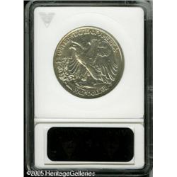 <B>1919-D 50C --Cleaned--ANACS. Unc Details, Net AU50.</B></I> Wispy hairlines are seen on silvery surfaces, particularly in the right obverse field. Fairly well detailed, and no mentionable abrasions. A decent looking coin, despite the "Cleaned" designation. Lot:7964
