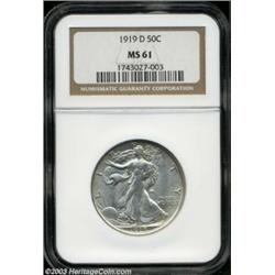 <table><tr><td><TABLE cellSpacing=0 cellPadding=0 width="100%" bgColor=#000000 border=0><TBODY> <TR><TD width="100%"><TABLE cellSpacing=1 cellPadding=3 width="100%" border=0><TBODY><TR><TD width="100%" bgColor=#79735c><FONT face=arial color=#ffffff size=3><B>Description</B> </FONT></TD></TR><TR><TD width="100%" bgColor=#ffffff><FONT face=arial size=2><B>1919-D 50C MS61 NGC.</B></I> A lustrous, essentially untoned example of this scarce, low mintage issue. Typically struck overall, but the surfaces are surprisingly clean, with only a few wispy abrasions in the right obverse field. Perhaps scarcer in Mint State than any other issue in the series that does not carry a 1921 date. </FONT></TD></TR></TBODY></TABLE></TD></TR></TBODY></TABLE><BR><A name=PricesRealized></A><TABLE cellSpacing=0 cellPadding=0 width="100%" bgColor=#000000 border=0><TBODY><TR><TD width="100%"><TABLE cellSpacing=1 cellPadding=3 width="100%" border=0><TBODY><TR><TD width="100%" bgColor=#79735c><A name=PR><FONT face=arial color=#ffffff size=3><B>Previous Prices from Heritage Auctions</B> </FONT></A></TD></TR><TR><TD bgColor=#f6f6ed><TABLE cellSpacing=0 cellPadding=0 width="100%" border=1><TBODY><TR><TD align=middle width="33%"><B>Date</B></TD><TD align=middle width="33%"><B>Service</B></TD><TD align=middle width="33%"><B>Price</B></TD></TR><TR bgColor=whitesmoke><TD width="33%"><B>05/05/2000</B></TD><TD width="33%">NGC</TD><TD width="33%">$2,990.00</TD></TR></TBODY></TABLE></TD></TR><TR><TD bgColor=#ffffff><FONT face=arial size=1 ?>PLEASE NOTE: All prices realized reflect the final hammer price PLUS the buyer's premium in auctions that charge a buyer's premium. Each item has a notation at the top of the listing indicating whether that lot included a buyer's premium. Example: A item that sells with a final hammer price of $100 and a 20% buyer's premium will display with a price realized of $120. All information listed is intended to be as accurate as possible, but errors are possible. Please use this guide carefully and inform us of any inaccuracies. </FONT></TD></TR></TBODY></TABLE></TD></TR></TBODY></TABLE><BR><TABLE cellSpacing=0 cellPadding=0 width="100%" bgColor=#000000 border=0><TBODY><TR><TD width="100%"><TABLE cellSpacing=1 cellPadding=3 width="100%" border=0><TBODY><TR><TD width="100%" bgColor=#79735c colSpan=6><FONT face=arial color=#ffffff size=3><B>Price Guide*</B> </FONT></TD></TR><TR bgColor=#f6f6ed><TD align=middle><B>Grade</B> </TD><TD align=middle><B>Coin World<BR>(Trends)</B> </TD><TD align=middle><B>Numismedia<BR>Retail</B> </TD><TD align=middle><B>Numismedia<BR>Wholesale</B> </TD><TD align=middle><B>Coin<BR>Universe</B> </TD><TD align=middle><B>Heritage<BR>Value Index</B> </TD></TR><TR bgColor=#ffffff><TD align=middle>60</TD><TD align=right>$4,000.00</TD><TD align=right>---</TD><TD align=right>$2,425.00</TD><TD align=right>$2,600.00</TD><TD align=right>$2,365.00</TD></TR><TR style="FONT-WEIGHT: bold" bgColor=#cccfdd><TD align=middle>61</TD><TD align=right>---</TD><TD align=right>---</TD><TD align=right>$2,850.00</TD><TD align=right>---</TD><TD align=right>$4,435.00</TD></TR><TR bgColor=#ffffff><TD align=middle>62</TD><TD align=right>$7,500.00</TD><TD align=right>---</TD><TD align=right>$3,600.00</TD><TD align=right>---</TD><TD align=right>$6,505.00</TD></TR><TR bgColor=#ffffff><TD colSpan=6><FONT size=1>*All information listed is intended to be as accurate as possible, but errors are possible. No item may be returned or refused based on this information which is provided as a service to our customers. You should contact each pricing source directly to determine the accuracy of this information. </FONT></TD></TR></TBODY></TABLE></TD></TR></TBODY></TABLE><BR><TABLE cellSpacing=0 cellPadding=0 width="100%" bgColor=#000000 border=0><TBODY><TR><TD width="100%"><TABLE cellSpacing=1 cellPadding=3 width="100%" border=0><TBODY><TR><TD width="100%" bgColor=#79735c><FONT face=arial color=#ffffff size=3><B>Population Guide</B> </FONT></TD></TR><TR bgColor=#ffffff><TD align=middle><!-- Begin Output of Population Grid--><TABLE cellSpacing=0 cellPadding=0 width="100%" border=0><TBODY><TR><TD vAlign=center><TABLE cellSpacing=0 width="100%" border=1 cellsadding="3"><TBODY><TR><TD vAlign=center><TABLE cellSpacing=0 cellPadding=3 width="100%" border=1><TBODY><TR><TD vAlign=center align=middle bgColor=#f0f1e8 colSpan=2 <CENTER><FONT face=Arial size=2><B>PCGS Pop </B></FONT><CENTER></CENTER></TD><TD vAlign=center align=middle bgColor=#f0f1e8 colSpan=2><CENTER><FONT face=Arial size=2><B>NGC Pop</B></CENTER></FONT></TD></TR><TR><TD vAlign=center><FONT face=Arial size=2>(61)</FONT> </TD><TD vAlign=center align=right><FONT face=Arial size=2>2</FONT> </TD><TD vAlign=center><FONT face=Arial size=2>(61)</FONT> </TD><TD vAlign=center align=right><FONT face=Arial size=2>16</FONT> </TD></TR><TR><TD vAlign=center><FONT face=Arial size=2>(>61)</FONT> </TD><TD vAlign=center align=right><FONT face=Arial size=2>144</FONT> </TD><TD vAlign=center><FONT face=Arial size=2>(>61)</FONT> </TD><TD vAlign=center align=right><FONT face=Arial size=2>106</FONT> </TD></TR></TBODY></TABLE></TD></TR></TBODY></TABLE></TD></TR></TBODY></TABLE><!-- End Output of Population Grid--></TD></TR></TBODY></TABLE></TD></TR></TBODY></TABLE><BR><TABLE cellSpacing=0 cellPadding=0 width="100%" bgColor=#000000 border=0><TBODY><TR> Important notice: Heritage usually auctions material at the rate of 200-250 lots per hour. On some occasions eBay Live bid software or the Internet may not be able to keep up with the pace of the auction. We recommend placing a realistic absentee bid now as insurance to avoid disappointment. Occasionally the auctioneer may eliminate or reject an eBay Live bid, and the auctioneer may also reopen a lot after the close of the eBay live bidding (usually because we missed an audience bid), and may reject your bid even if it shows you as the winning bidder. By bidding via eBay Live, you agree that Heritage may award the lot to another bidder at i