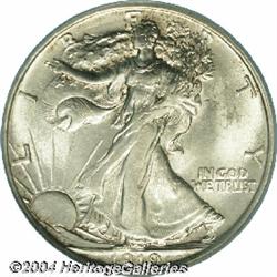 <B>1919-D<50C> MS63 PCGS.</B></I> The '19-D is one of the most challenging of all the early Walkers. It is an absolute rarity in all grades with only 1.1 million pieces issued, and it is also conditionally rare in all Uncirculated grades, particularly Select and better. Typically defined, some incompleteness of strike is seen on Liberty's head, hand, leg, but the eagle's chest and leg are both exceptionally sharp. The bright silver luster is accented with subtle russet shadings on selected areas on the obverse. Worth a close look and a strong bid. <BR><BR><B>Important notice:</B> Heritage usually auctions material at the rate of 200-250 lots per hour. On some occasions eBay Live bid software or the Internet may not be able to keep up with the pace of the auction. We recommend placing a realistic absentee bid now as insurance to avoid disappointment. Occasionally the auctioneer may eliminate or reject an eBay Live bid, and the auctioneer may also reopen a lot after the close of the eBay live bidding (usually because we missed an audience bid), and may reject your bid even if it shows you as the winning bidder. By bidding via eBay Live, you agree that Heritage may award the lot to another bidder at its sole discretion under the circumstances described above or any other reasonable circumstances. Since eBay bids are not shown to us until we open the lot on the floor, we treat those bids just like floor bids. In most cases the floor responds before the eBay bid is presented to us, due to Internet lag time, so for consistency we have made it a policy that floor bids are always considered first over tie eBay live bids. Also please note that all Heritage lots purchased through eBay Live carry a 20% Buyer's Premium. Please make sure you read the Terms and Conditions before you bid.