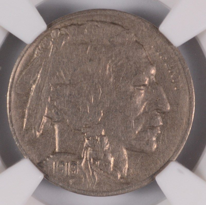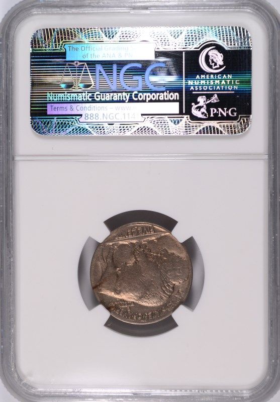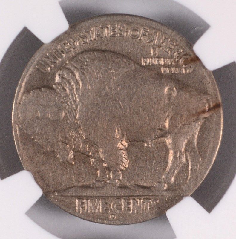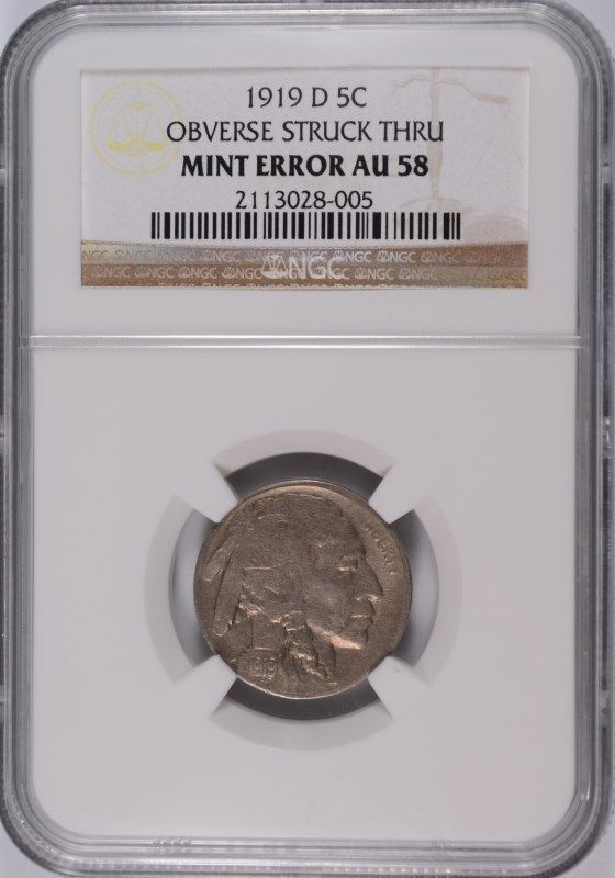 1919-D BUFFALO NICKEL, NGC AU-58 MINT ERROR, OBVERSE STRUCK THROUGH, RARE!!