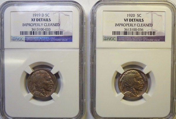 1919-D BUFFALO NICKEL NGC XF CLEANED, AND A 1920 VF NGC NICKEL!