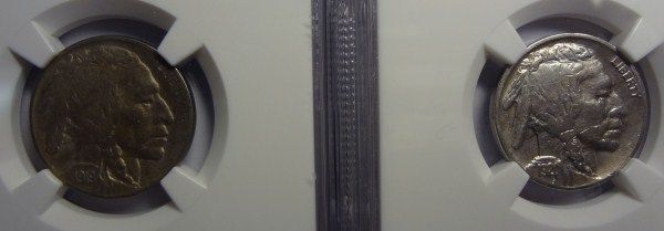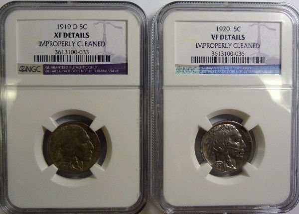 1919-D BUFFALO NICKEL NGC XF CLEANED, WITH A FREE 1920 VF NGC NICKEL!