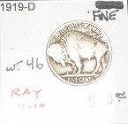 1919-D BUFFALO NICKEL RED BOOK VALUE IS $100.00 *EXTREMELY RARE KEY DATE FINE GRADE*!! ***Coin, Currency & All Items Listed in this auction - Grades, Conditions and Values are not Safe Deposit Coins LLC Responsibilty. Grades, Condition and Values are determined by Consigner(s) & Buyers ONLY