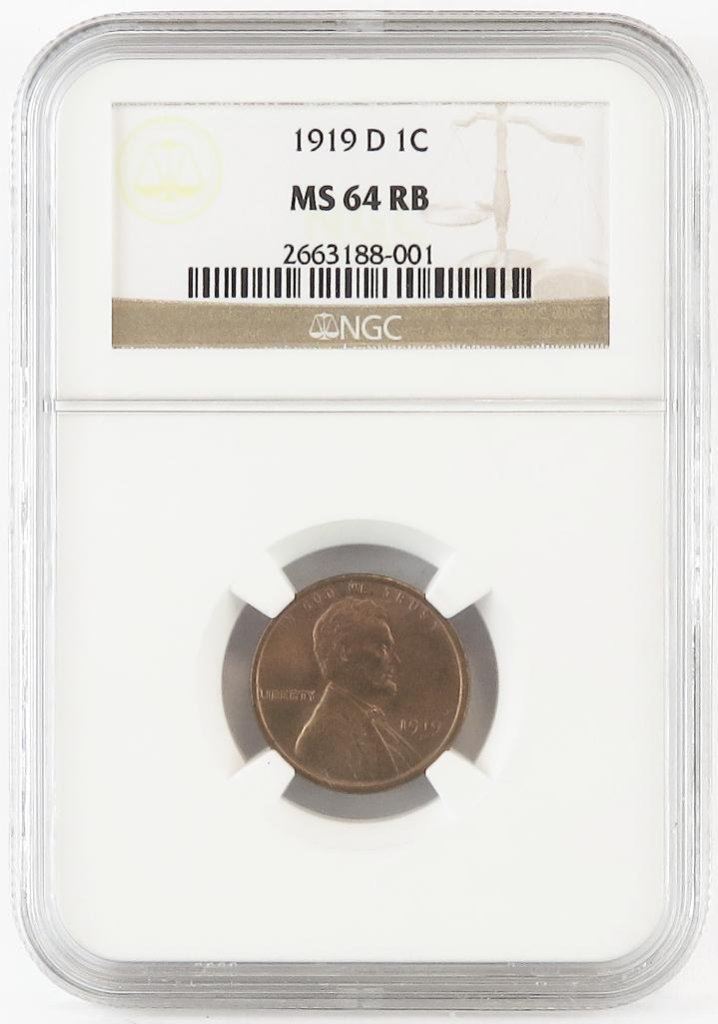 1919 D Lincoln Wheat Cent. NGC Certified MS64RB.