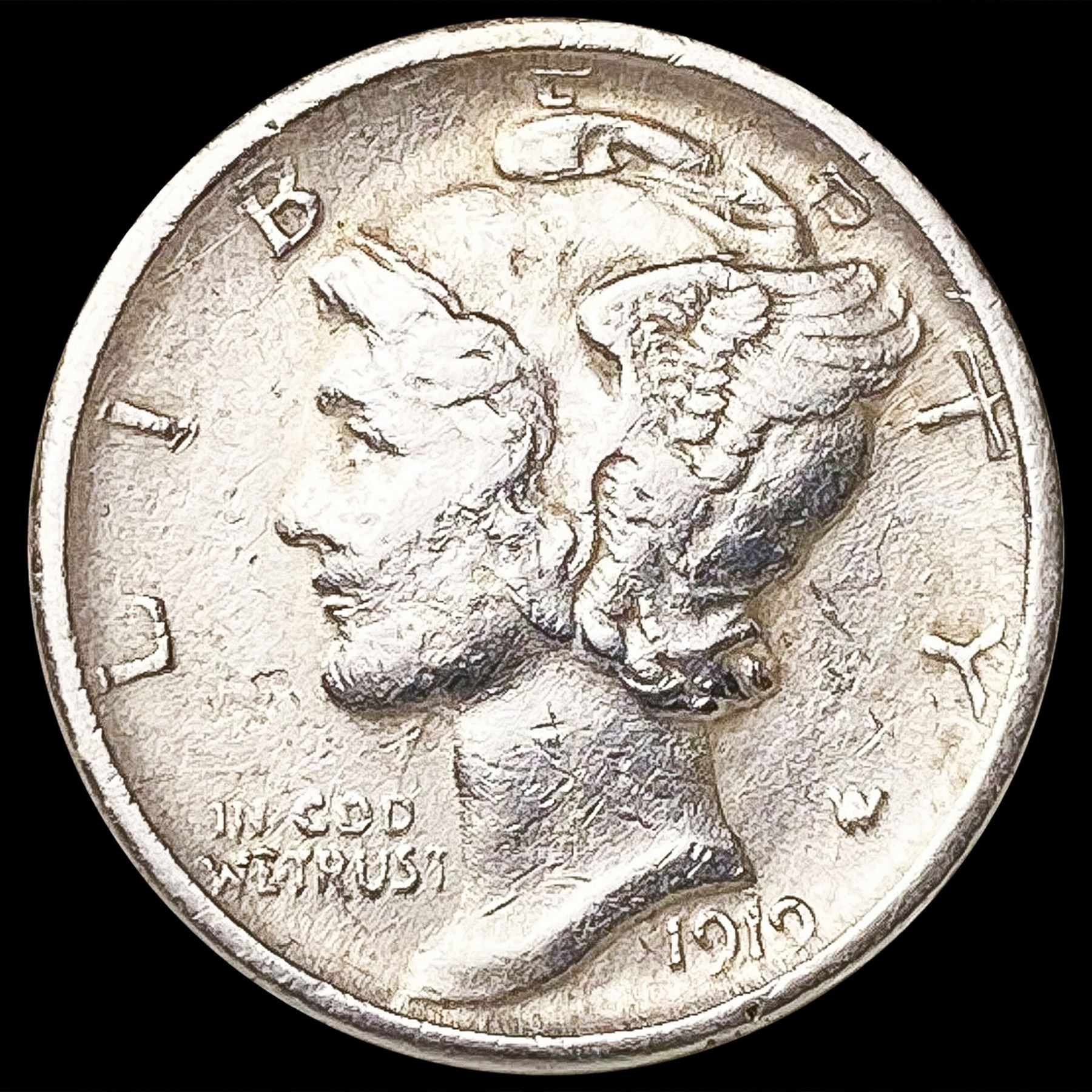 1919-D Mercury Dime NEARLY UNCIRCULATED