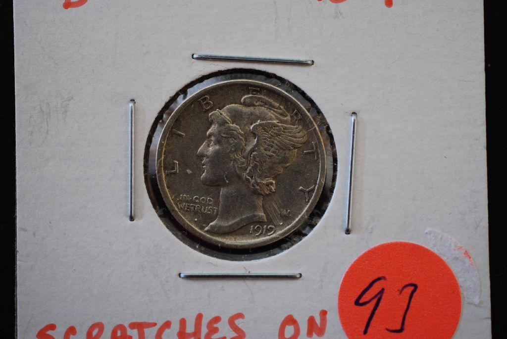 1919-D Mercury Dime; Scratches on Face of Coin; EST. $40-60