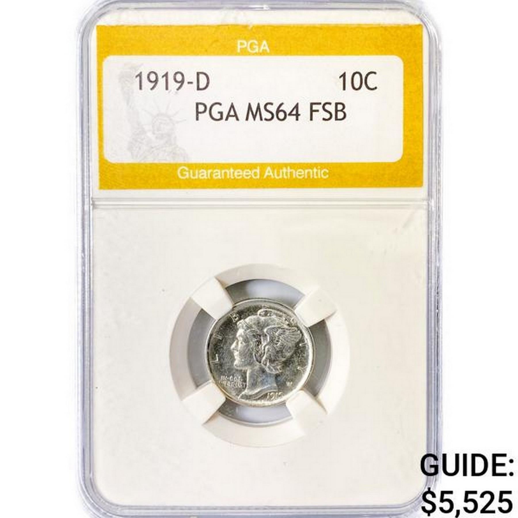 1919-D Mercury Silver Dime PGA MS64 FSB