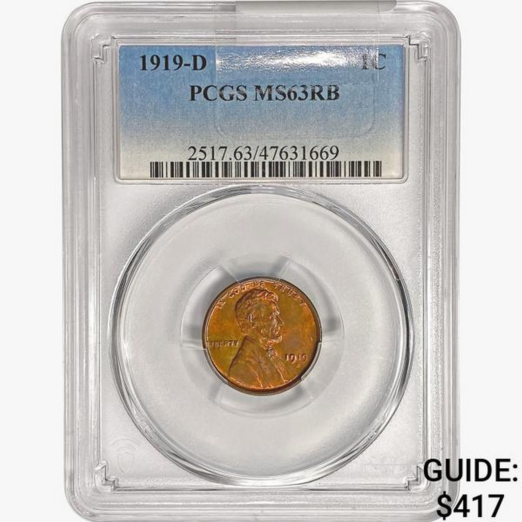 1919-D Wheat Cent PCGS MS63 RB