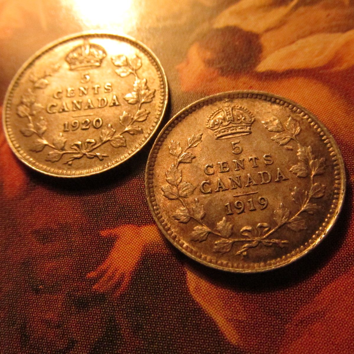 1919 EF & 1920 EF Canada Five Cent Silvers.