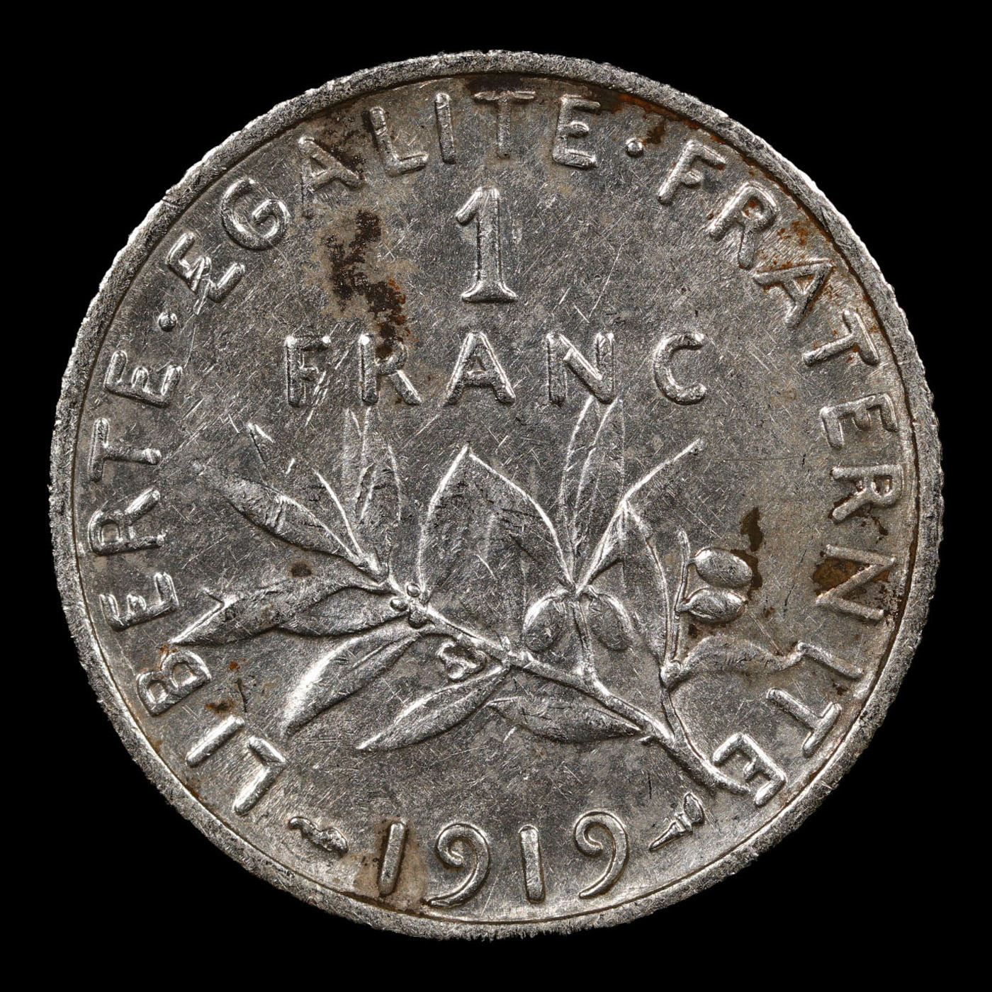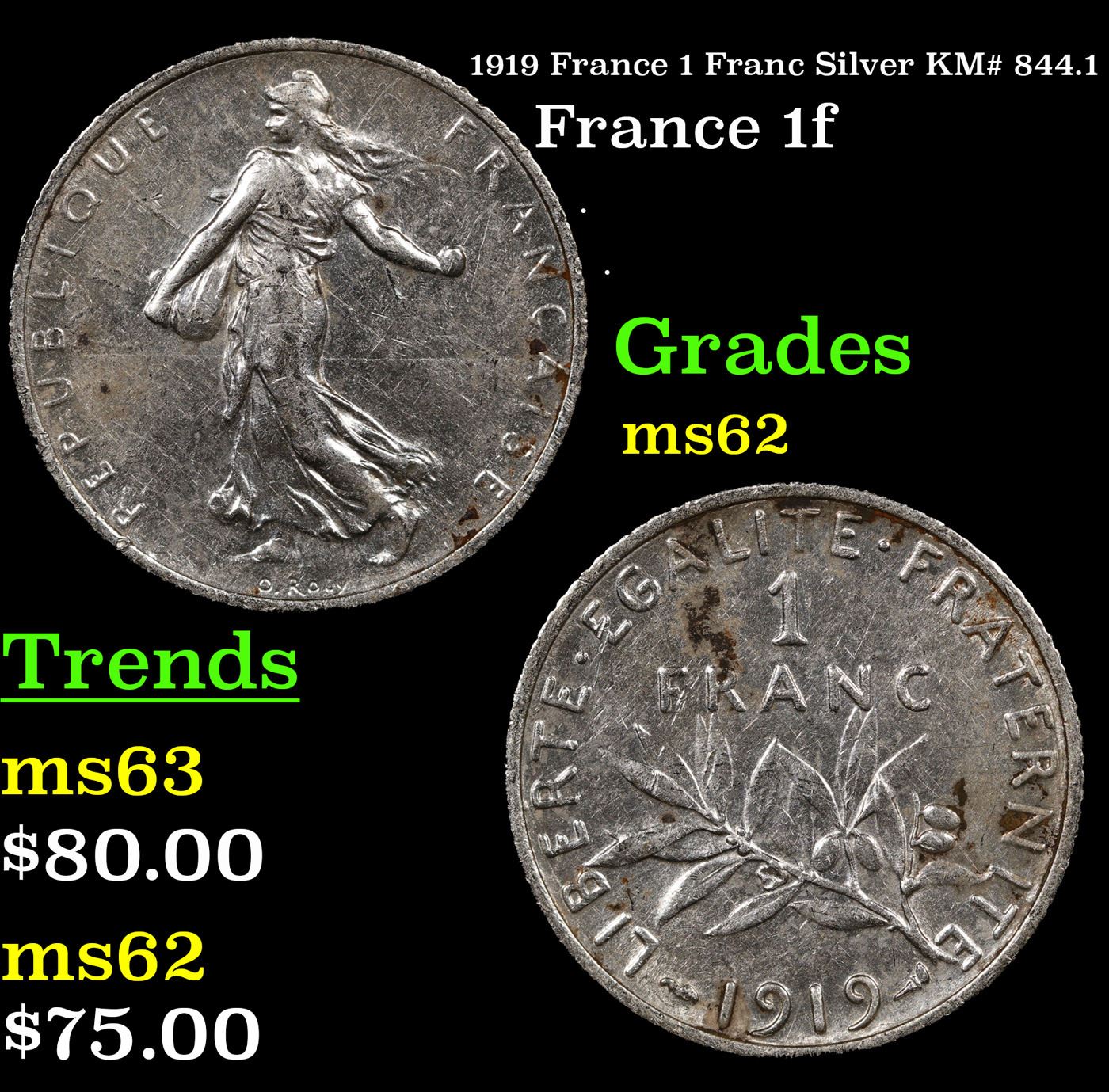 1919 France 1 Franc Silver KM# 844.1 Grades Select Unc.