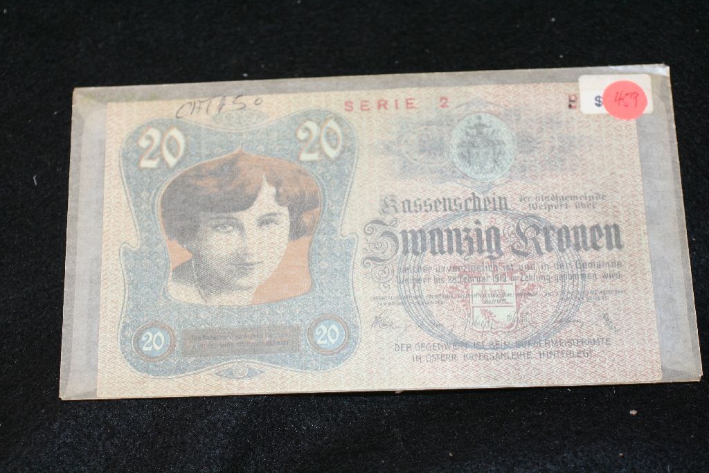 1919 German 20 Swanzig Kronen Foreign Bank Note