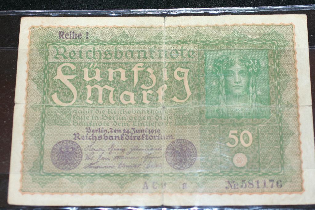 1919 German 50 Funfzig Mark Foreign Bank Note