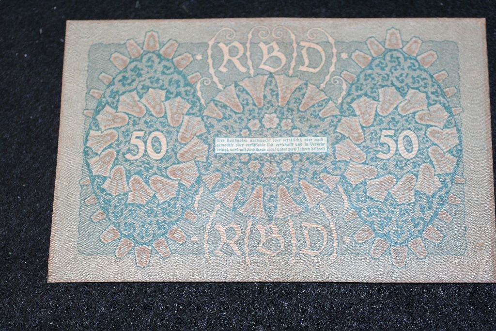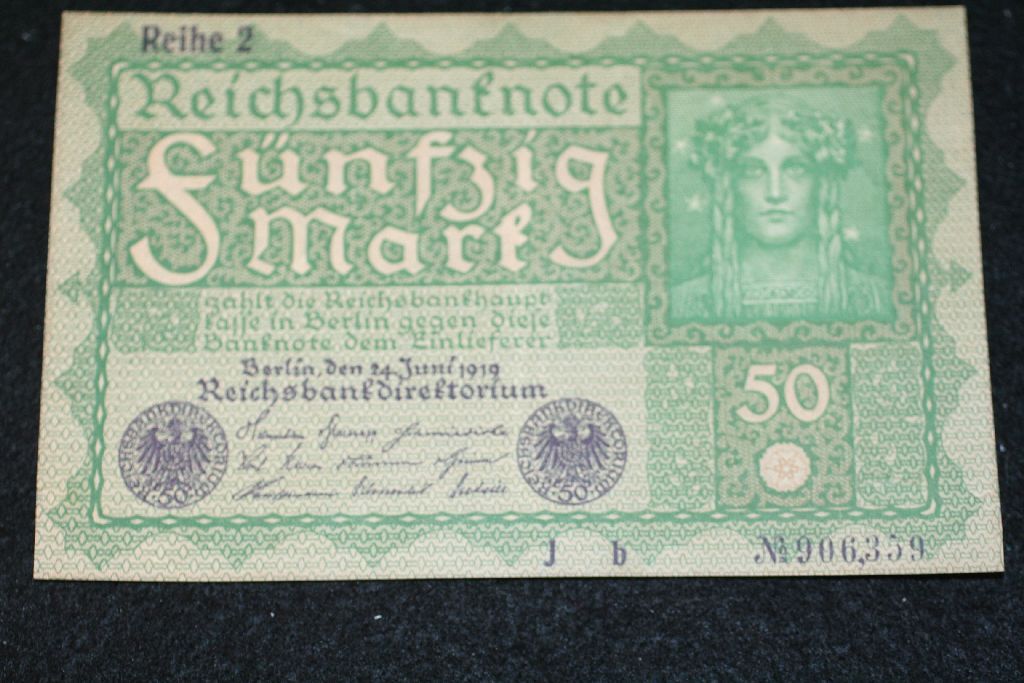 1919 German 50 Funfzig Mark Foreign Bank Note
