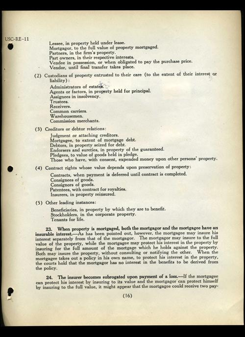 Scarce original collection page on the reverse of a real estate course manual; 6 scarce early pieces