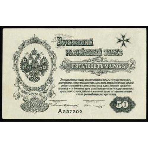 <style type="text/css"> body, td, th { font-family: Arial, Helvetica, sans-serif; font-size: 12px; color: #482424; margin: 0px; padding: 0px; } #header { background-image: url(http://www.bowersandmerena.com/ebay/images/template_v3_01.gif); clear: both; background-color: #590303; border-top-width: 2px; border-top-style: solid; border-top-color: #B38C4F; } #header #header_wrapper { height: 75px; clear: both; width: 800px; margin-right: auto; margin-left: auto; background-image: url(http://www.bowersandmerena.com/ebay/images/template_v3_03.gif); background-repeat: no-repeat; background-position: right; color: #F3EDCC; } #header #header_wrapper #header_logo { float: left; height: 75px; width: 444px; background-image: url(http://www.bowersandmerena.com/ebay/images/template_v3_02.gif); background-repeat: no-repeat; font-size: 10px; text-transform: capitalize; color: #B38C4F; } #header #header_wrapper #header_right { float: left; height: 75px; width: 356px; text-align: right; } #header #header_wrapper #header_right #headerLoginBtn { margin-bottom: 30px; } #header #header_wrapper #header_right input#txtSearch { color: #B49056; border: 1px solid #B49056; width: 175px; padding-top: 3px; padding-right: 3px; padding-bottom: 4px; padding-left: 3px; } #nav { height: 37px; background-image: url(http://www.bowersandmerena.com/ebay/images/template_v3_05.gif); clear: both; } #nav #nav_wrapper { height: 35px; width: 800px; margin-right: auto; margin-left: auto; border-left-width: 1px; border-left-style: solid; border-left-color: #B38C4F; } #nav #nav_wrapper a { padding-right: 15px; padding-left: 15px; border-right-width: 1px; border-right-style: solid; border-right-color: #B38C4F; height: 25px; padding-top: 10px; display: block; float: left; text-decoration: none; font-weight: bold; color: #5D0303; } #nav #nav_wrapper a:hover { color: #B38C4F; } #nav #nav_wrapper #search { float: right; padding-top: 7px; } #nav #nav_wrapper #search #txtSearch { font-family: Arial, Helvetica, sans-serif; font-size: 10px; text-transform: uppercase; color: #D2AE75; border: 1px solid #B38C4F; padding: 3px; } #content_bgd { background-image: url(http://www.bowersandmerena.com/ebay/images/template_v3_09.gif); background-repeat: repeat-y; background-position: center; padding-top: 15px; padding-bottom: 15px; background-color: #FBFBDB; } #content_wrapper { clear: both; height: auto; width: 800px; margin-right: auto; margin-left: auto; } .LotDetailWhite { line-height:normal; font-size:13px; font-family: arial,helvetica,sans-serif; color: White; font-weight: bold; } .LotDetailInformation { line-height:normal; font-size: 13px; font-family: arial,helvetica,sans-serif; } .LotDetailMessage { line-height:normal; font-size: 13px; font-family: arial,helvetica,sans-serif; color: red; } } tr.HeaderAuctionTitle td { color: #000000; font-weight: bold; padding: 2px; background-image: url(http://www.bowersandmerena.com/ebay/images/template_v3_05.gif); background-repeat: repeat-x; border-bottom-width: 1px; border-bottom-style: solid; border-bottom-color: #B38C4F; } table.AuctionSummary a, table.AuctionSummary a:link, table.AuctionSummary a:visited { color: #0000FF; text-decoration: none; } } td.tableHeaderLeft { border-left-width: 1px; border-left-style: solid; border-left-color: #B38C4F; } td.tableHeaderRight { border-right-width: 1px; border-right-style: solid; border-right-color: #B38C4F; } td.tableCellMiddle { border-left-width: 1px; border-left-style: solid; border-left-color: #B38C4F; border-right-width: 1px; border-right-style: solid; border-right-color: #B38C4F; padding: 5px; } tr.footer td { border-top-width: 1px; border-top-style: solid; border-top-color: #B38C4F; } </style> </head> <body> <div id="header"> <div id="header_wrapper"> <div id="header_logo"> </div> <div id="header_right"> </div> </div> </div> <div id="nav"> <div id="nav_wrapper"> <a href="http://www.bowersandmerena.com">Our eBayLive Auctions</a> <a href="#PaymentInfo">Payment Information</a> <a href="#ShippingInfo">Shipping Information</a> <a href="#About">About Bowers and Merena</a> </div> </div> <div id="content_bgd"> <div id="content_wrapper"> <table width="100%" border="0" cellpadding="5" cellspacing="0" class="AuctionSummary"> <tbody> <tr class="HeaderAuctionTitle" style="height: 25px;"> <td align="left" class="tableHeaderLeft" > </td> <td align="center" class="tableHeaderRight"> <span style="font-size: large;">Lot #2040. Northwest Russia. Independent West Army Under Colonel Avalov-Bermondt, 1919 Kassenscheine (Treasury Notes) Issue.</span> </td> </tr> <tr> <td colspan="3" class="tableCellMiddle"> Lot of 6 different notes. All are dated 1919. Includes 1 Mark, P-S226, (3 copies, 1 AU and 2 XF+); 5 Marks, P-S227, AU+; 10 Marks, P-S228, VF+; and 50 Marks, P-S230, XF to XF+ condition.