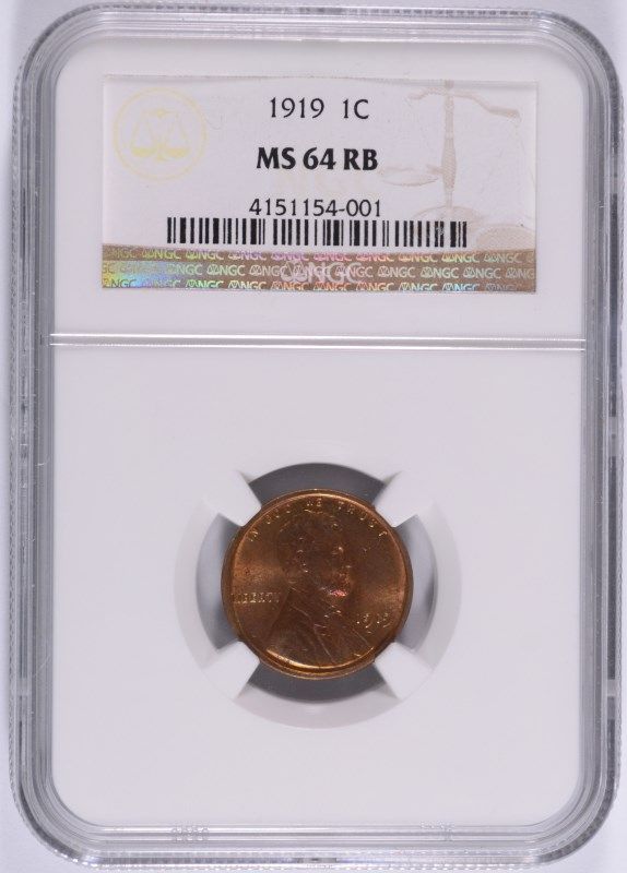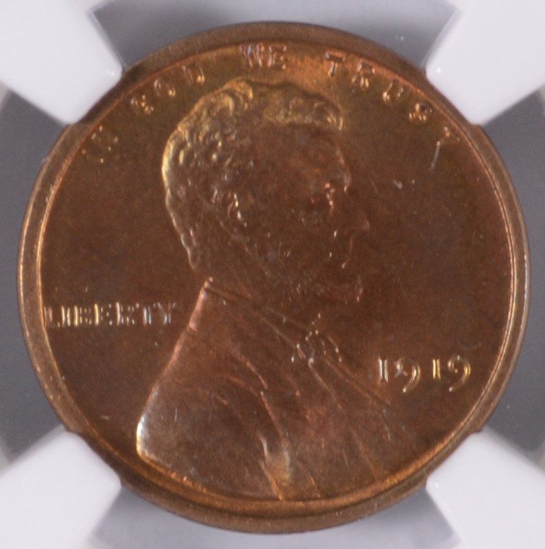 1919 LINCOLN CENT NGC MS64 RB, BEAUTIFUL RAINBOW COLORS OBVERSE AND REVERSE!