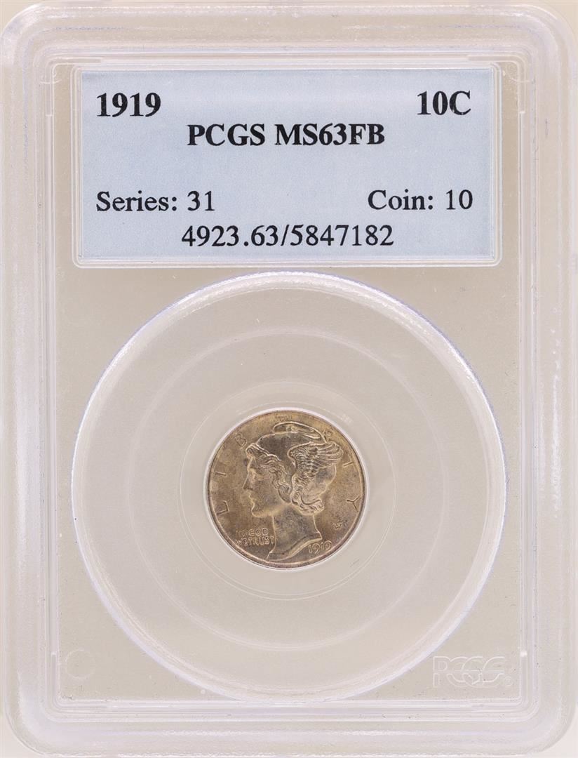 One 1919 Mercury Dime Coin PCGS MS63FB. PCGS Certified.