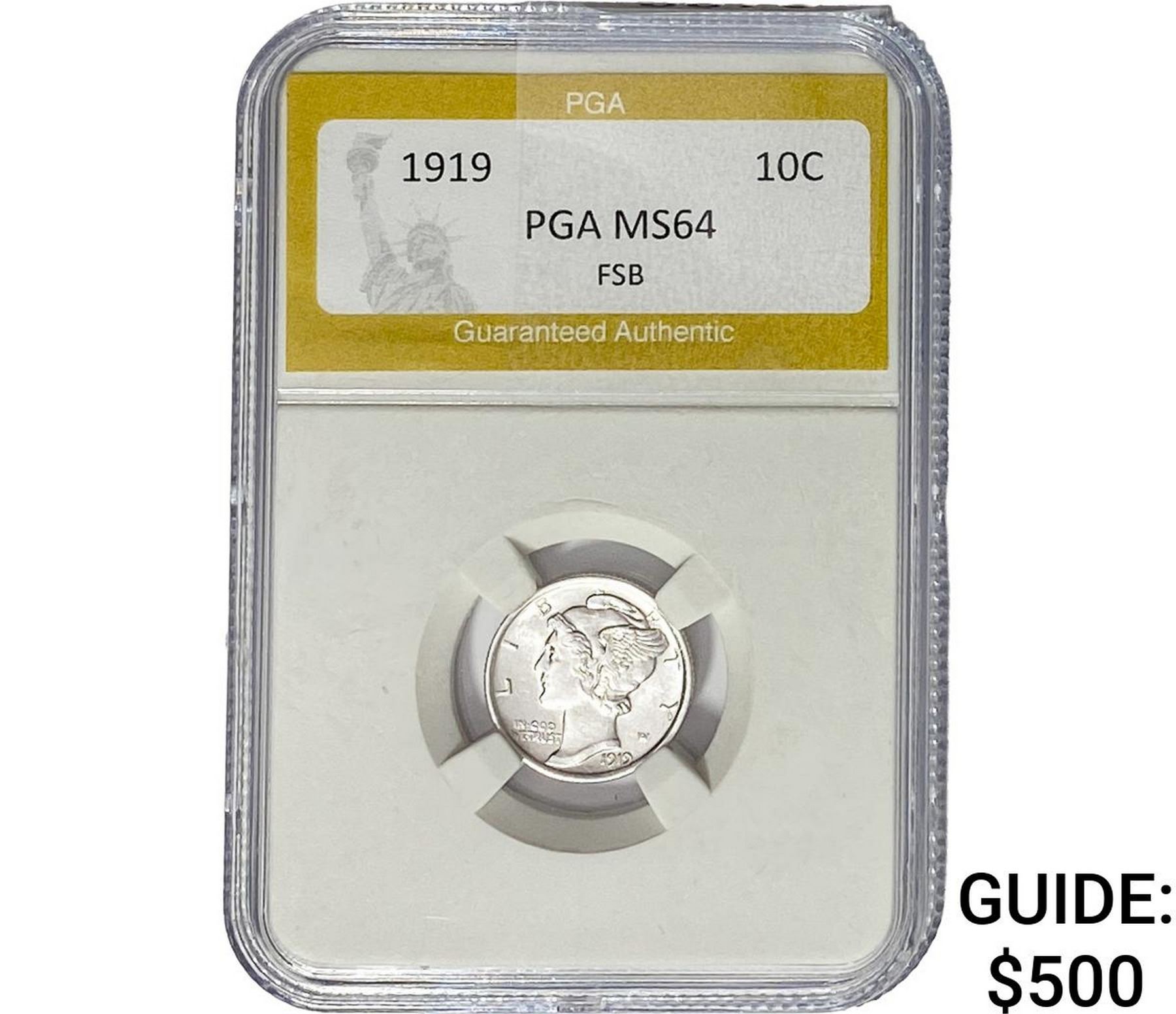 1919 Mercury Silver Dime PGA MS64 FSB