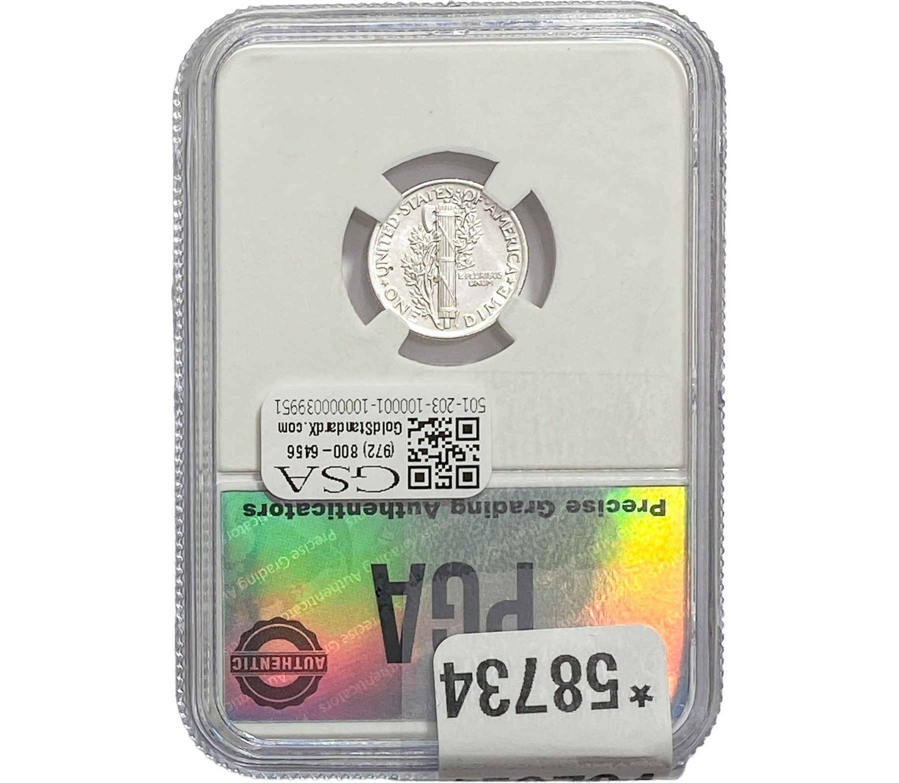 COINS AND CURRENCY LISTED IN GSA’S CATALOG AS GRADED AND ENCAPSULATED BY PCGS, NGC, ANACS, ICG, PCGS CURRENCY, PMG, PCGS BANKNOTE GRADING, CMC OR ANY OTHER THIRD-PARTY GRADING SERVICE ARE LIKEWISE SOLD “AS-IS” EXCEPT AS EXPRESSLY SET FORTH HEREIN. ALL THIRD-PARTY GRADING SERVICE GUARANTEES, INCLUDING AUTHENTICITY, ARE THE SOLE RESPONSIBILITY OF THE THIRD-PARTY GRADING SERVICE AND NOT WARRANTIES OR GUARANTEES OF GSA. BIDDERS SHOULD CONTACT THESE THIRD-PARTY GRADING SERVICES DIRECTLY WITH RESPECT TO ANY CLAIMS OR QUESTIONS THEY MAY HAVE CONCERNING THEIR GUARANTEES AND WARRANTIES. BIDDERS ACKNOWLEDGE AND AGREE THAT AUCTIONEER IS NOT BOUND BY OR LIABLE FOR ANY OPINION OR CERTIFICATION BY ANY THIRD-PARTY GRADING SERVICE. REMOVAL OF A PRODUCT FROM ITS PROTECTIVE CASING OR HOLDER OR ALTERATION OF ANY COIN HOLDER WAIVES ALL RIGHTS CONCERNING THE PRODUCT CONTAINED THEREIN.