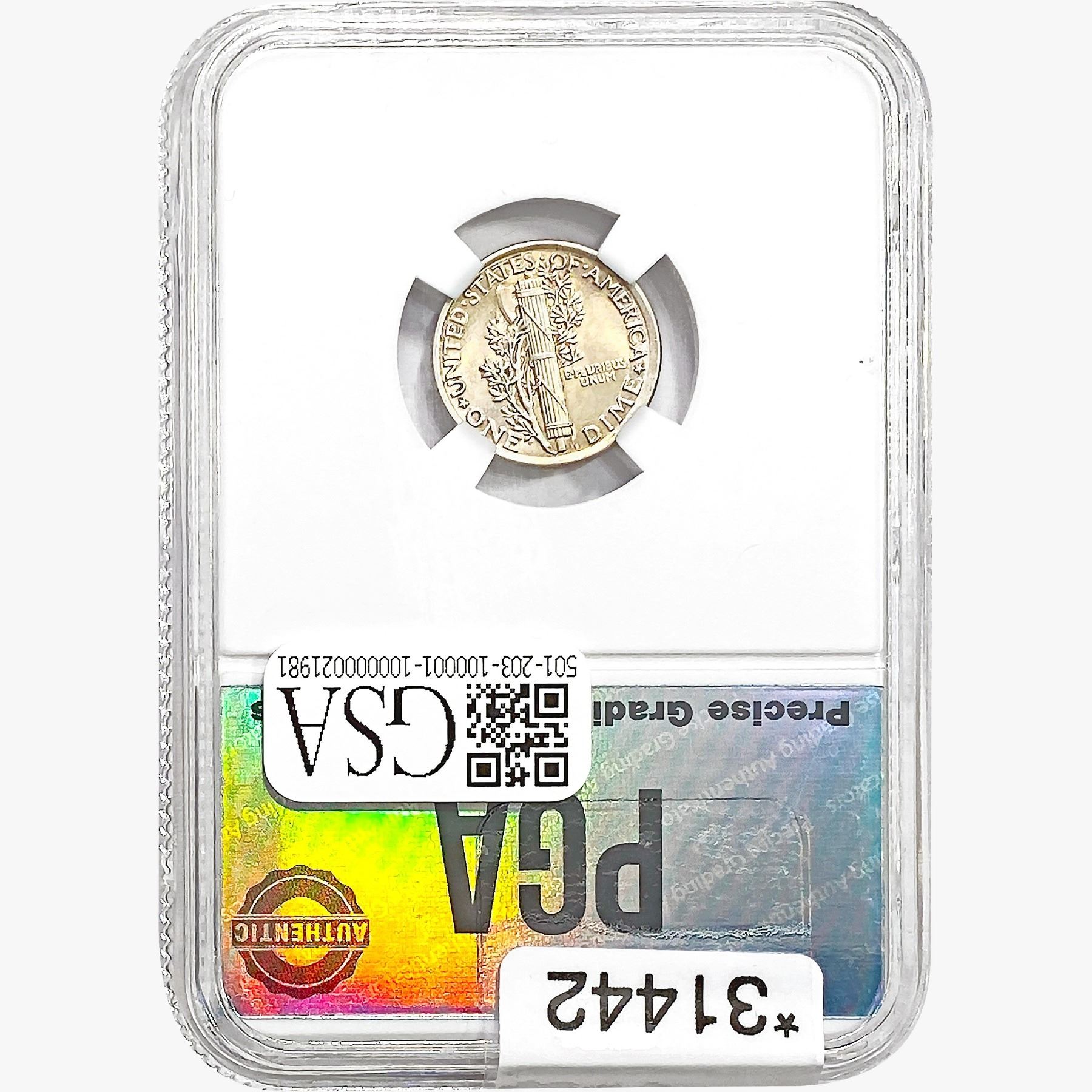COINS AND CURRENCY LISTED IN GSA’S CATALOG AS GRADED AND ENCAPSULATED BY PCGS, NGC, ANACS, ICG, PCGS CURRENCY, PMG, PCGS BANKNOTE GRADING, CMC OR ANY OTHER THIRD-PARTY GRADING SERVICE ARE LIKEWISE SOLD “AS-IS” EXCEPT AS EXPRESSLY SET FORTH HEREIN. ALL THIRD-PARTY GRADING SERVICE GUARANTEES, INCLUDING AUTHENTICITY, ARE THE SOLE RESPONSIBILITY OF THE THIRD-PARTY GRADING SERVICE AND NOT WARRANTIES OR GUARANTEES OF GSA. BIDDERS SHOULD CONTACT THESE THIRD-PARTY GRADING SERVICES DIRECTLY WITH RESPECT TO ANY CLAIMS OR QUESTIONS THEY MAY HAVE CONCERNING THEIR GUARANTEES AND WARRANTIES. BIDDERS ACKNOWLEDGE AND AGREE THAT AUCTIONEER IS NOT BOUND BY OR LIABLE FOR ANY OPINION OR CERTIFICATION BY ANY THIRD-PARTY GRADING SERVICE. REMOVAL OF A PRODUCT FROM ITS PROTECTIVE CASING OR HOLDER OR ALTERATION OF ANY COIN HOLDER WAIVES ALL RIGHTS CONCERNING THE PRODUCT CONTAINED THEREIN.
