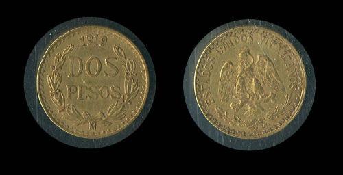 1919 Mexico 2 peso circ gold; Non-restrike circulating date!