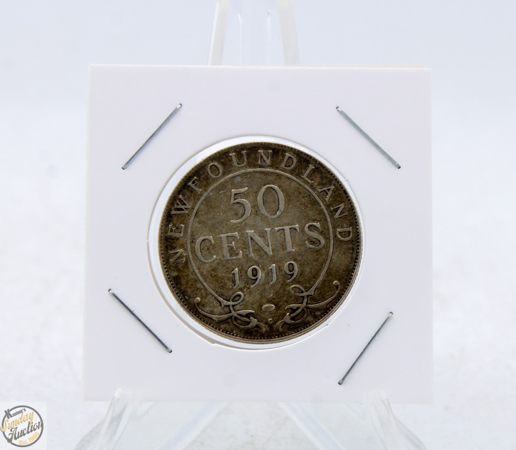 NEWFOUNDLAND HALF DOLLAR 1919 **ALL ITEMS MUST BE REMOVED BY 5PM SATURDAY, NOVEMBER 15TH 2025. ALL REMAINING ITEMS WILL BE SUBJECT TO A $6.00 PER DAY STORAGE CHARGE. ANY ITEMS REMAINING AFTER MONDAY, DECEMBER 1ST 2025 WILL BE CONSIDERED FORFEITED. NO REFUNDS WILL BE ISSUED FOR FORFEITED ITEMS. TO SCHEDULE A PICK UP APPOINTMENT CLICK HERE