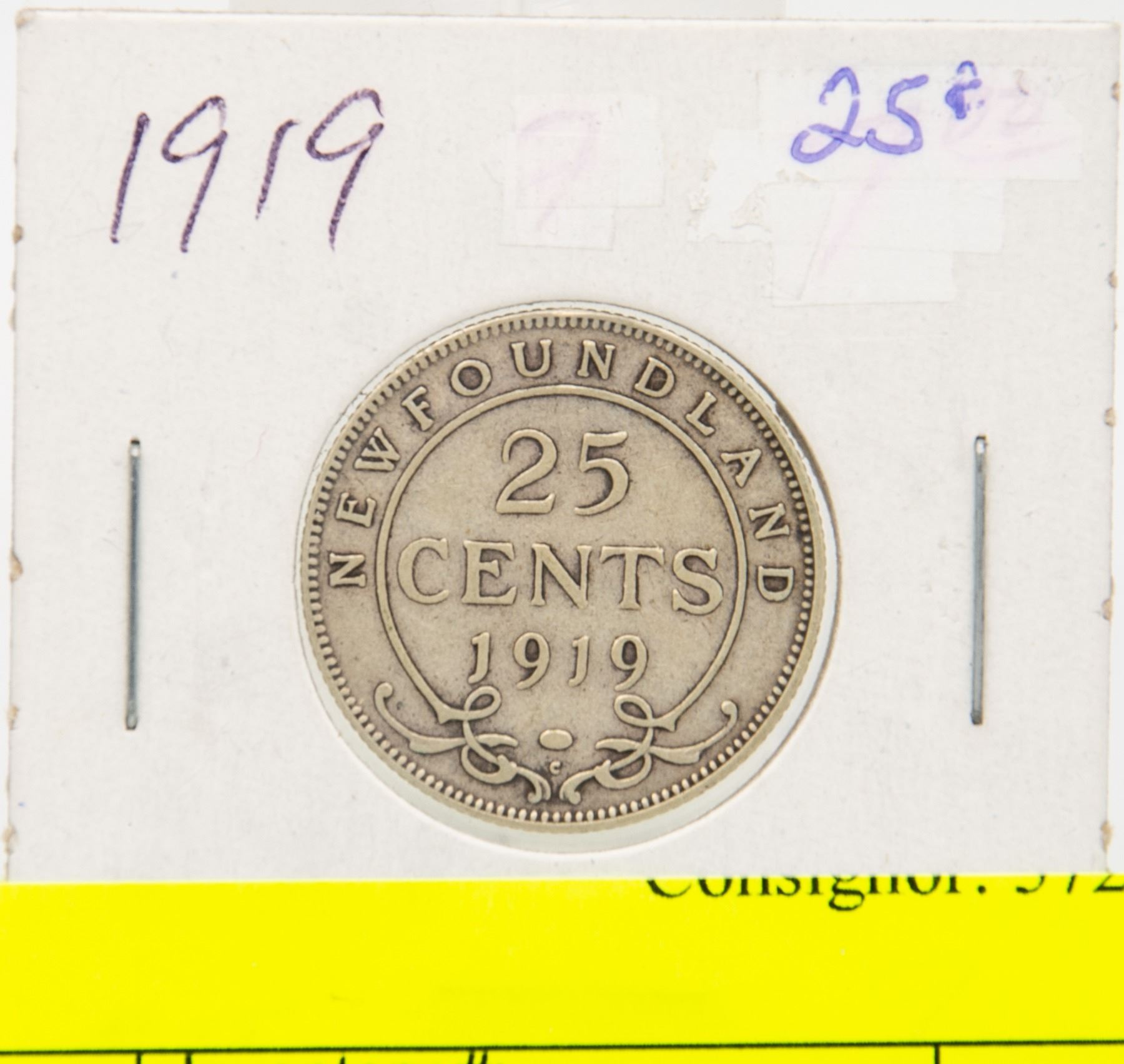 1919 NFLD KING GEORGE SILVER QUARTER