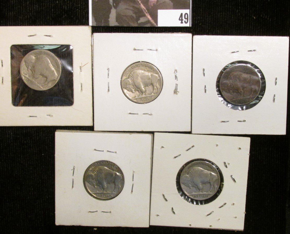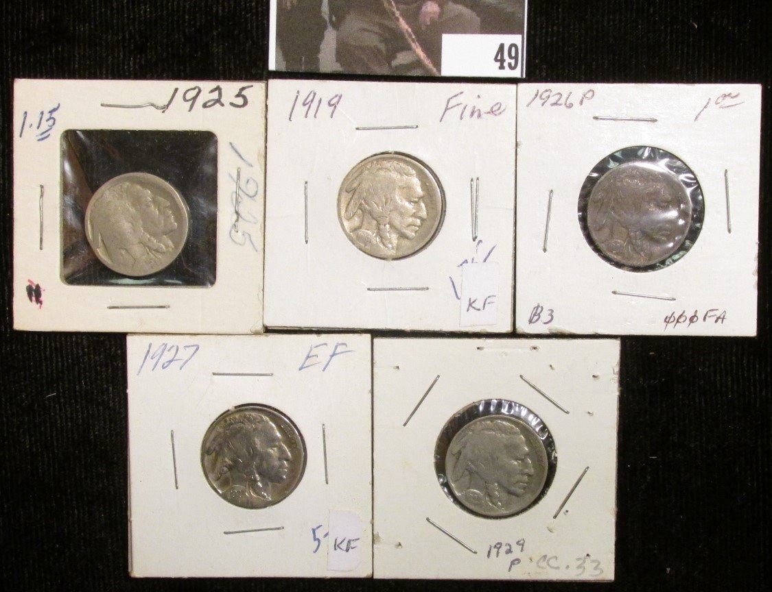 1919 P, 25 P, 26 P, 27 P, & 29 P Buffalo Nickels in holders, Good to Extra Fine.
