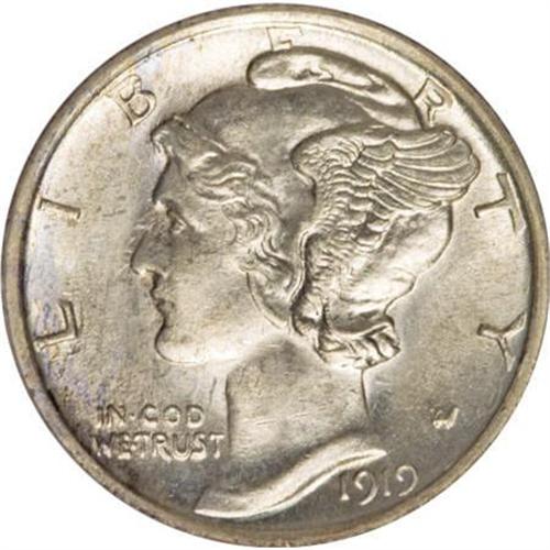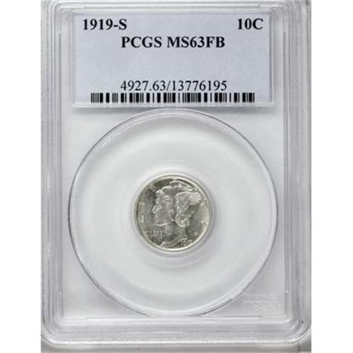 <B>1919-S 10C MS63 Full Bands PCGS.</B></I> A lustrous coin for the MS63 grade, with silver-gray surfaces and a bold strike that fully separates the central crossbands on the reverse. Obverse scratches, including several on Liberty's neck and one near the L in LIBERTY limit the grade. There can be little doubt that the vast majority of the 8.8 million dimes produced in San Francisco in 1919 entered circulation and remained there for many years. Today, the 1919-S is only readily obtainable at the most heavily worn levels of preservation. While Mint State coins of any quality are difficult to locate, Full Bands representatives are rarer still. <BR><BR><B>Coin Engraver:</B> Adolph A. Weinman<BR><BR><b>Shipping:</b> Coins & Currency (<a target="_blank" href="http://www.heritageauctions.com/common/shipping.php">view shipping information</a>)