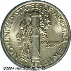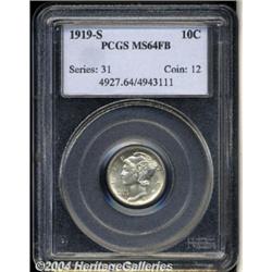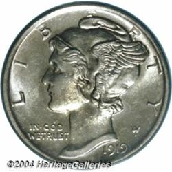 <B>1919-S<10C> MS64 Full Bands PCGS.</B></I> In his book <I>Complete Guide to Mercury Dimes,</B></I> David Lange writes that Uncirculated specimens of any grade are difficult to locate for this issue, and that full bands are rare. The present Full Bands near-Gem example is sharply impressed, and has a film of light gold color over lustrous surfaces. A couple of miniscule marks are noted on Mercury's cheek and neck, and an unobtrusive toning streak is seen in the upper right reverse field.<BR><I>From The Velma & Bowie Lynch Collection, Part Four.</B></I> <BR><BR><B>Important notice:</B> Heritage usually auctions material at the rate of 200-250 lots per hour. On some occasions eBay Live bid software or the Internet may not be able to keep up with the pace of the auction. We recommend placing a realistic absentee bid now as insurance to avoid disappointment. Occasionally the auctioneer may eliminate or reject an eBay Live bid, and the auctioneer may also reopen a lot after the close of the eBay live bidding (usually because we missed an audience bid), and may reject your bid even if it shows you as the winning bidder. By bidding via eBay Live, you agree that Heritage may award the lot to another bidder at its sole discretion under the circumstances described above or any other reasonable circumstances. Since eBay bids are not shown to us until we open the lot on the floor, we treat those bids just like floor bids. In most cases the floor responds before the eBay bid is presented to us, due to Internet lag time, so for consistency we have made it a policy that floor bids are always considered first over tie eBay live bids. Also please note that all Heritage lots purchased through eBay Live carry a 20% Buyer's Premium. Please make sure you read the Terms and Conditions before you bid. </span></font></tr></table></td></tr></table>