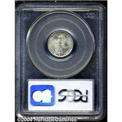 <B>1919-S<10C> MS66 Full Bands PCGS.</B></I> This issue's original mintage of 8.8 million pieces is on the scarce side for the Mercury Dime series. Add to this the fact that most extant '19-S Dimes are worn to one degree or another and one can easily appreciate the scarcity of this date in Mint State. As specialists in this widely collected 20th century series know, the 1919-S is also a major strike rarity. In fact, David Lange (1993) ranks this issue the second rarest S-mint Mercury with Full Bands definition.<BR> This is one of the most important Mercury Dimes of <B>any</B></I> issue that we have handled in recent memory. First, the strike. The all-important central reverse crossbands are fully split from end-to-end. What's more, the definition remains crisp throughout virtually all other features. Now for the surface preservation. It is equally as impressive as the strike with smooth, lustrous surfaces that are devoid of grade-limiting abrasions. Untoned save for a few flickers of pale tinting at the borders, and a no-questions Gem that is sure to find its way into an important Registry Set. Population: 1 in 66, 0 finer (3/04). <BR><BR><B>Important notice:</B> Heritage usually auctions material at the rate of 200-250 lots per hour. On some occasions eBay Live bid software or the Internet may not be able to keep up with the pace of the auction. We recommend placing a realistic absentee bid now as insurance to avoid disappointment. Occasionally the auctioneer may eliminate or reject an eBay Live bid, and the auctioneer may also reopen a lot after the close of the eBay live bidding (usually because we missed an audience bid), and may reject your bid even if it shows you as the winning bidder. By bidding via eBay Live, you agree that Heritage may award the lot to another bidder at its sole discretion under the circumstances described above or any other reasonable circumstances. Since eBay bids are not shown to us until we open the lot on the floor, we treat those bids just like floor bids. In most cases the floor responds before the eBay bid is presented to us, due to Internet lag time, so for consistency we have made it a policy that floor bids are always considered first over tie eBay live bids. Also please note that all Heritage lots purchased through eBay Live carry a 20% Buyer's Premium. Please make sure you read the Terms and Conditions before you bid.