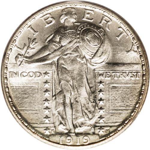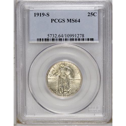 <B>1919-S 25C MS64 PCGS.</B></I> Bright luster radiates from well preserved surfaces that are nearly color-free. Sharp definition is visible on the design features, though a couple of the rivets near Liberty's body reveal the usual weakness; the vertical stripes of the inner shield show, as do some of the horizontal ones. A couple of light marks on Liberty's right (left facing) leg define the grade.<BR><BR><b>Shipping:</b> Coin/Currency (<a target="_blank" href="http://www.heritageauctions.com/common/shipping.php">view shipping information</a>)
