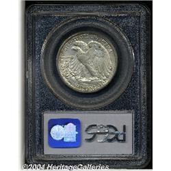 <B>1919-S<50C> MS63 PCGS.</B></I> Bruce Fox noted that this 1919-S issue had the highest mintage of the year with the result that the issue was saved less. We would like to add that the west coast had many fewer collectors to save coins at the time of issue, so nearly all examples immediately entered circulation. Two different Mint State 1919-S Walkers are offered in the present sale. This select MS63 example if fully original with ivory luster and splashes of golden-brown toning. <BR><BR><B>Important notice:</B> Heritage usually auctions material at the rate of 200-250 lots per hour. On some occasions eBay Live bid software or the Internet may not be able to keep up with the pace of the auction. We recommend placing a realistic absentee bid now as insurance to avoid disappointment. Occasionally the auctioneer may eliminate or reject an eBay Live bid, and the auctioneer may also reopen a lot after the close of the eBay live bidding (usually because we missed an audience bid), and may reject your bid even if it shows you as the winning bidder. By bidding via eBay Live, you agree that Heritage may award the lot to another bidder at its sole discretion under the circumstances described above or any other reasonable circumstances. Since eBay bids are not shown to us until we open the lot on the floor, we treat those bids just like floor bids. In most cases the floor responds before the eBay bid is presented to us, due to Internet lag time, so for consistency we have made it a policy that floor bids are always considered first over tie eBay live bids. Also please note that all Heritage lots purchased through eBay Live carry a 20% Buyer's Premium. Please make sure you read the Terms and Conditions before you bid.