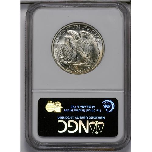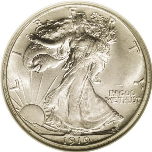 <B>1919-S<50C> MS64 NGC.</B></I> Population data has proven the 1919-S half dollar to be on equal ground with the better publicized 1921-S as the stingiest in Mint State availability among Walking Liberty issues. Ironically, both the '19-S and '21-S have the highest mintage of the PDS lineup from their years of issue. This lightly toned specimen is quite bold for a '19-S featuring a nearly full head and some visible thumb detail. The fields are satiny overall, but a couple of mentionable marks are noted in the right obverse field. An attractive, borderline Gem specimen of this important early S-mint half dollar from the popular and beautiful Walking Liberty series. Census: 28 in 64, 26 finer (6/06).