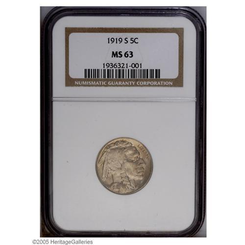 <B>1919-S<5C> MS63 NGC.</B></I> Well struck with faintly glossy surfaces that reveal a slight degree of reddish color near the centers. Carefully preserved and free of noticeable blemishes.