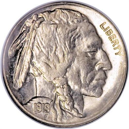 <B>1919-S 5C MS64 NGC.</B></I> This date is notorious for being weakly struck, yet this near-Gem specimen exhibits relatively sharp detail, with the exception of the hair at the bison's forehead and the tail. Exceptionally bright surfaces display light toning, and are devoid of mentionable marks.<BR><BR><B>Coin Engraver:</B> James E. Fraser<BR><BR><b>Shipping:</b> Coins & Currency (<a target="_blank" href="http://www.heritageauctions.com/common/shipping.php">view shipping information</a>)