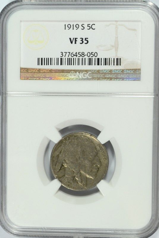 1919-S BUFFALO NICKEL, NGC VF-35, LOOKS XF-40 SCARCE COIN!