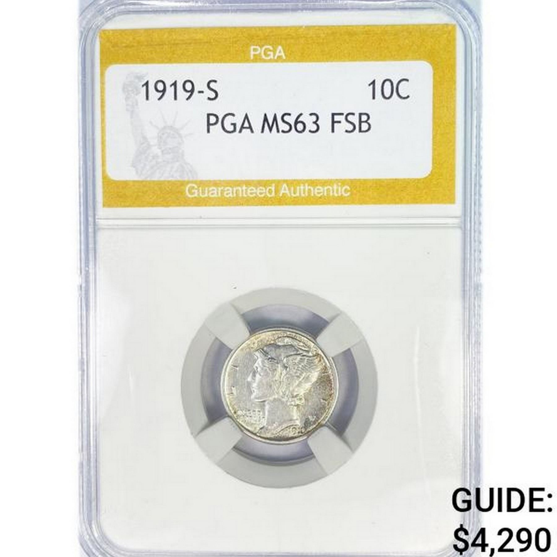 1919-S Mercury Silver Dime PGA MS63 FSB